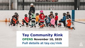 The Tay Community Rink, located at 573 Talbot St. in Port McNicoll will open on Monday, November 10, 2025, for public and private bookings.